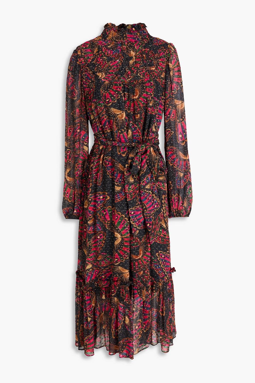 FARM RIO Midikleid aus Chiffon mit Fil-Coupé in Metallic-Optik und Print