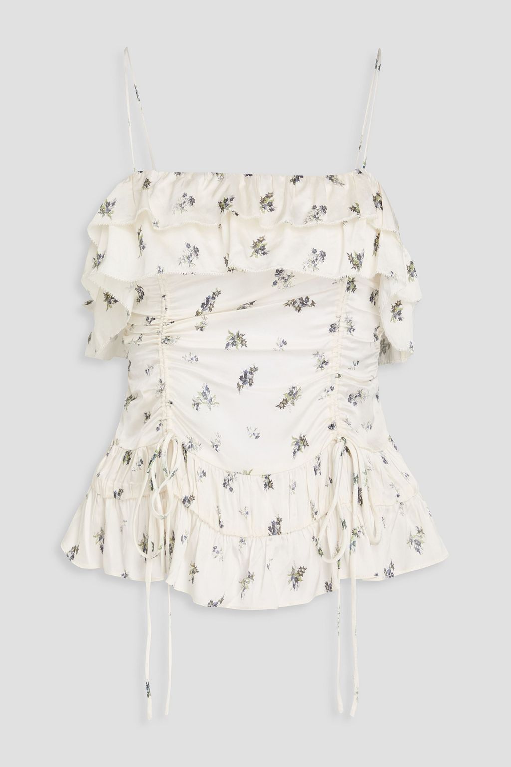 GANNI Gestuftes Oberteil aus Satin mit floralem Print