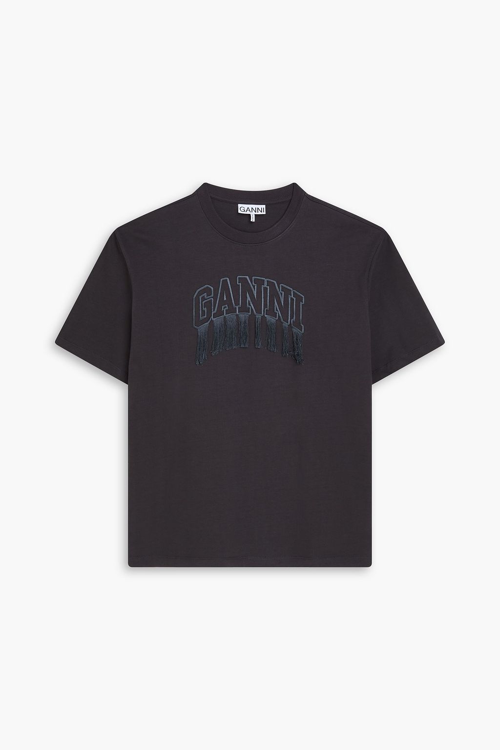 GANNI T-Shirt aus Baumwoll-Jersey mit Stickereien und Fransen