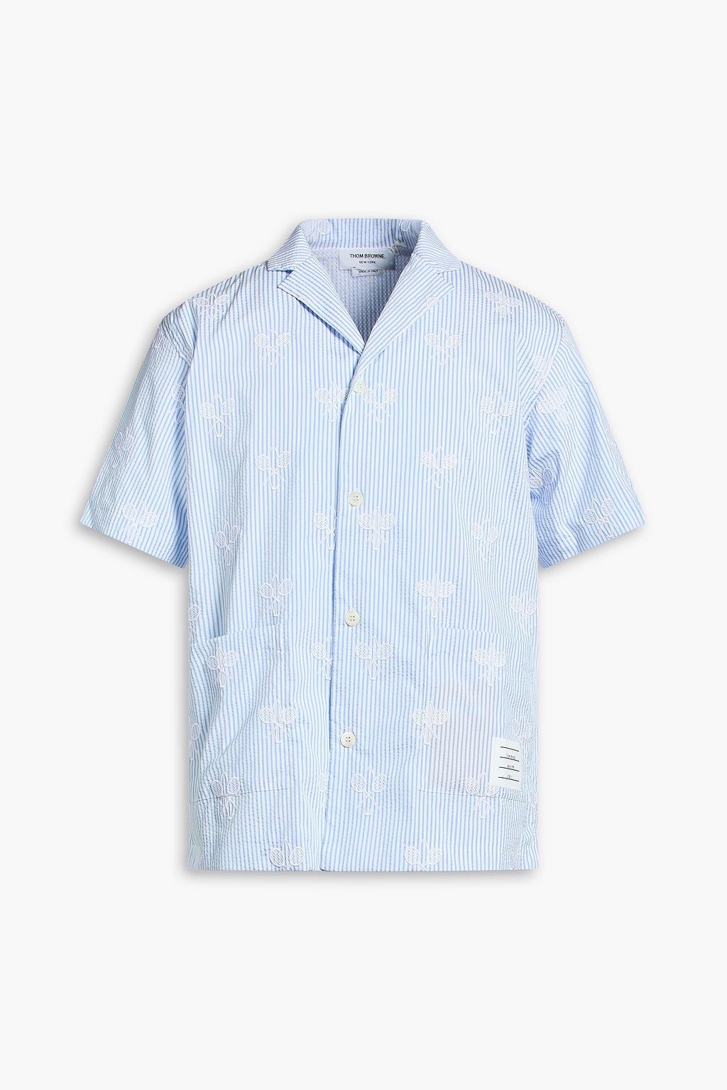 THOM BROWNE Embroidered striped seersucker shirt