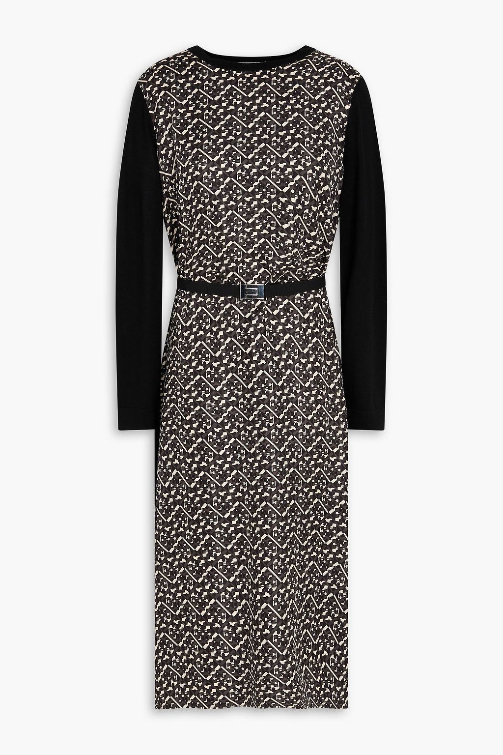 TORY BURCH Kleid aus Merinowolle und Seiden-Twill mit Print und Gürtel