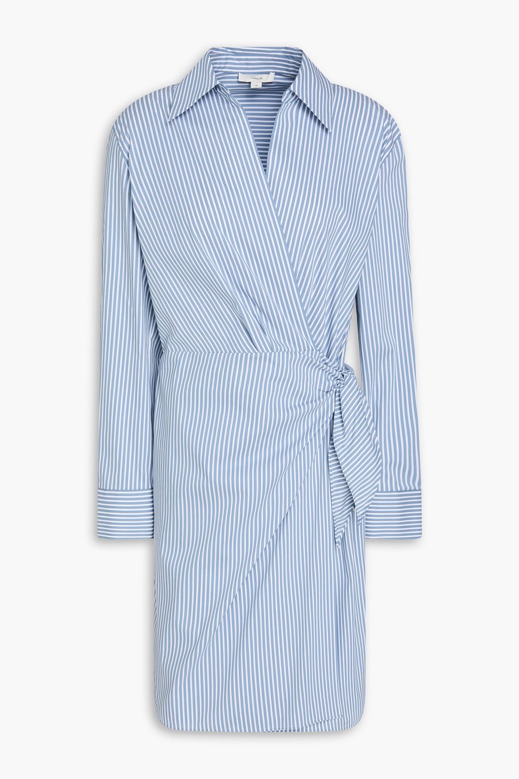 VINCE. Mini-Wickelkleid aus Popeline aus einer Baumwollmischung mit Streifen