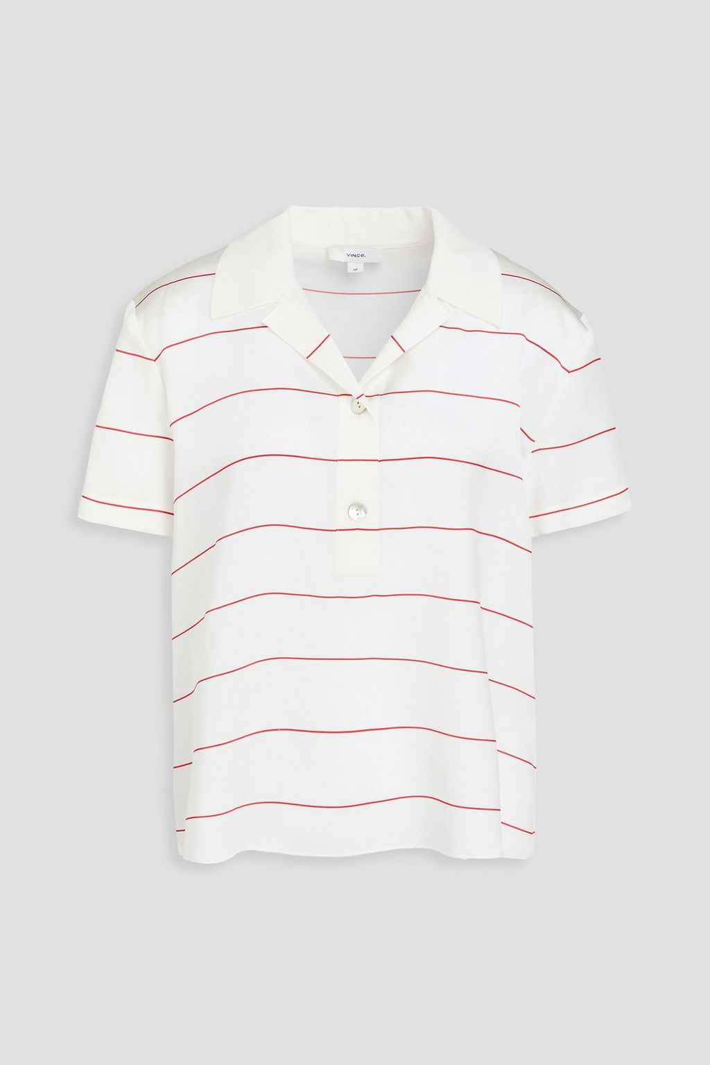VINCE. Gestreiftes Poloshirt aus Seidensatin