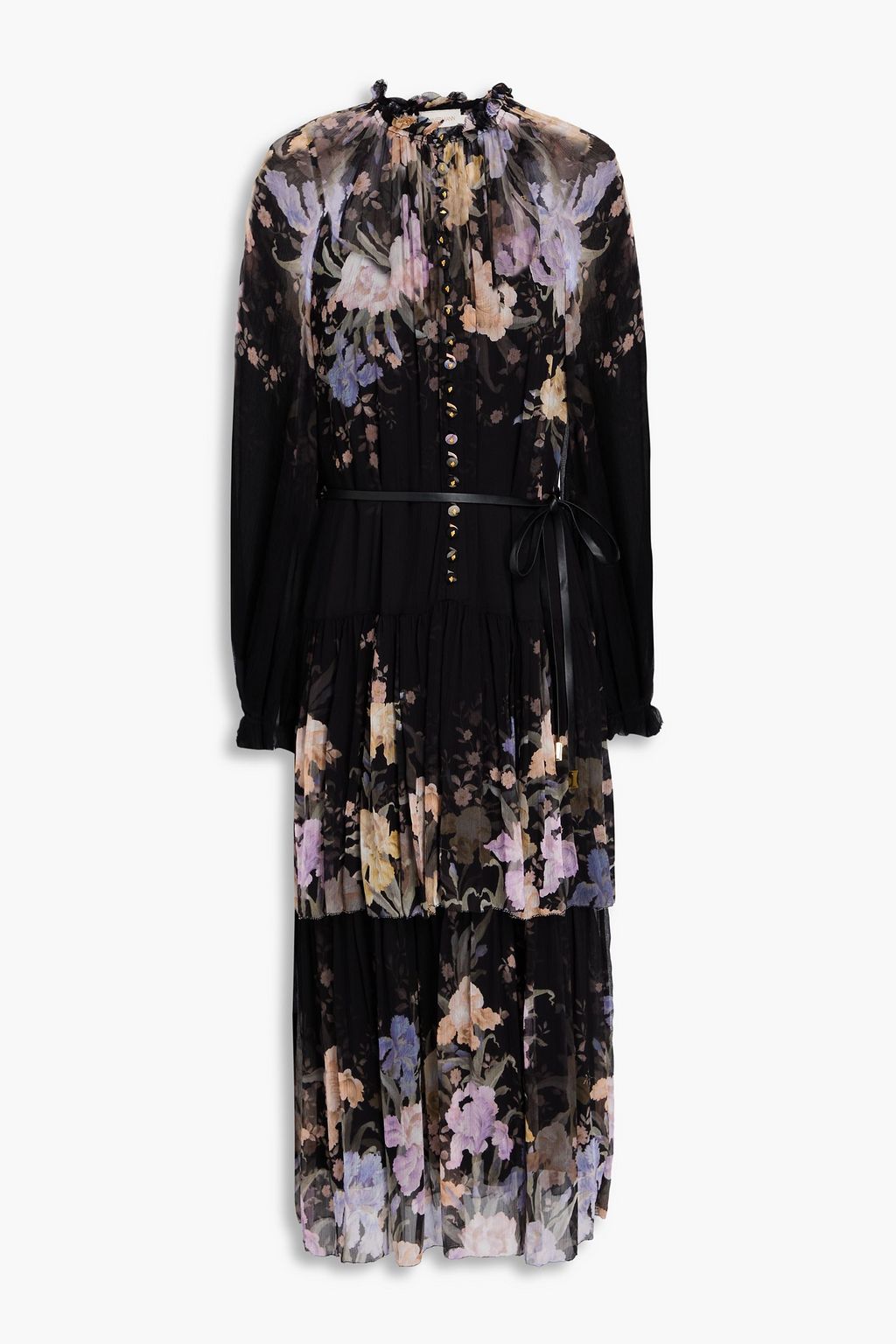 ZIMMERMANN Gestuftes Midikleid aus Krepon mit floralem Print