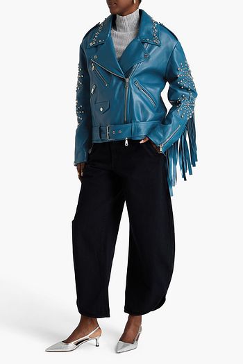 Fringed studded leather biker jacket