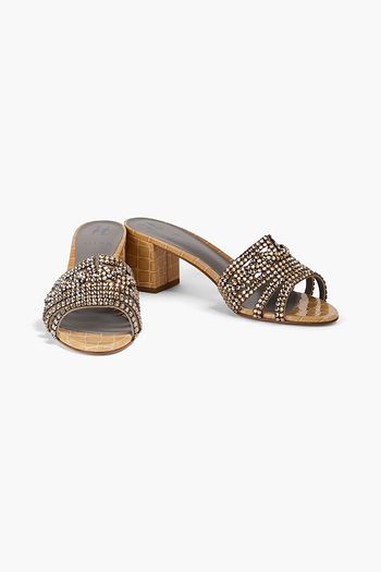 Sandalen „Martine“ aus Leder mit Eidechseneffekt und Kristallverzierung
