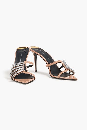 Mules aus verspiegeltem Leder mit Kristallverzierung