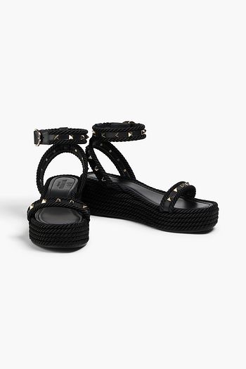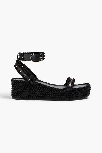 Rockstud pebbled-leather espadrille wedge sandals