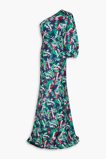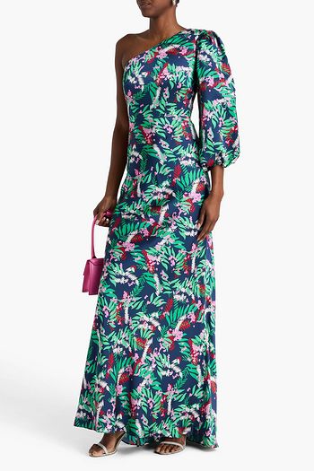 One-shoulder floral-print linen and silk-blend gauze mini dress