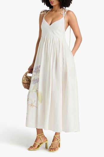 Ariel ruffled floral-print cotton and silk-blend satin midi dress