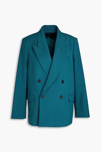 Double-breasted pinstriped cotton and linen-blend twill blazer