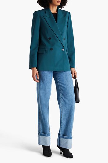 Viva double-breasted Prince of Wales checked linen and cotton-blend blazer