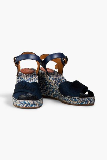 Canvas-trimmed leather wedge sandals