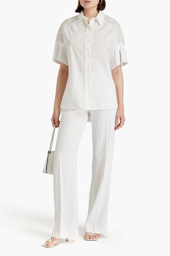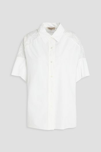 Embroidered organza and cotton-poplin shirt