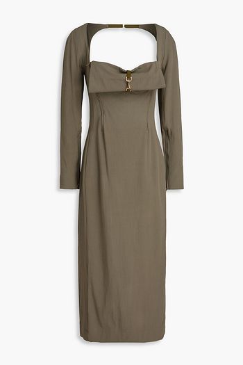 Fiesta embellished cutout metallic stretch-knit midi dress