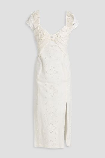 Cold-shoulder broderie anglaise linen-blend midi dress