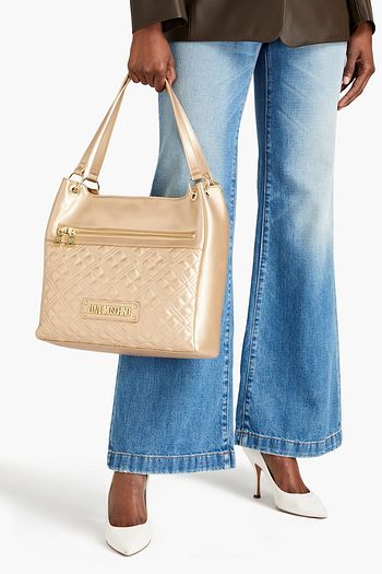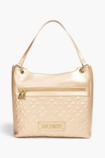 Quilted metallic faux leather tote