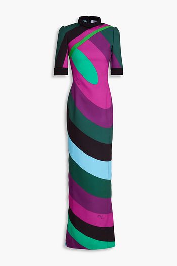 Scalloped printed stretch-crepe maxi dress