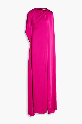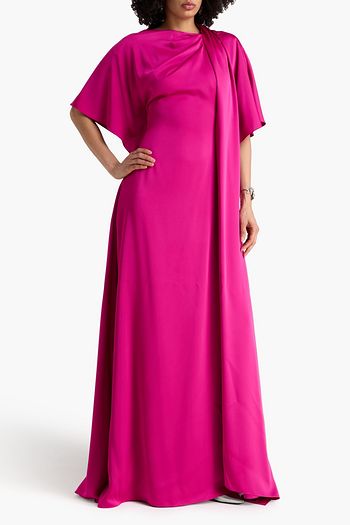 Lilith cape-effect gathered crepe-satin gown