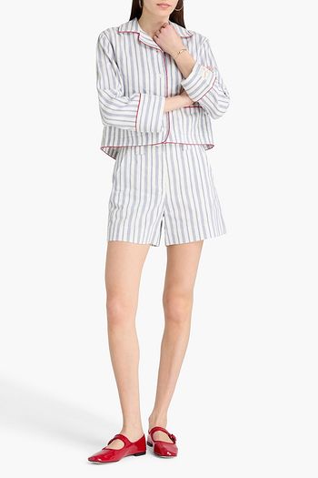 Embellished cutout striped cotton-poplin shorts