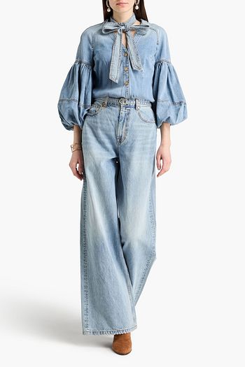 Pussy-bow denim shirt