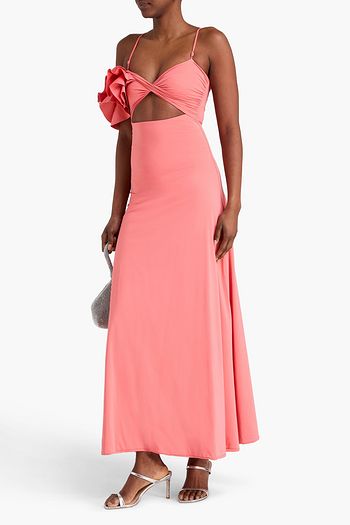 Versa off-the-shoulder fil coupé jersey midi dress