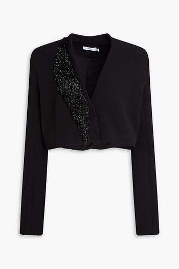 Cropped bead-embellished crepe blazer
