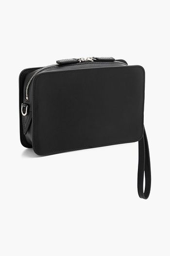 Leather-trimmed twill messenger bag