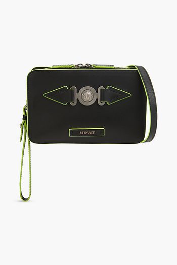 Embossed leather messenger bag