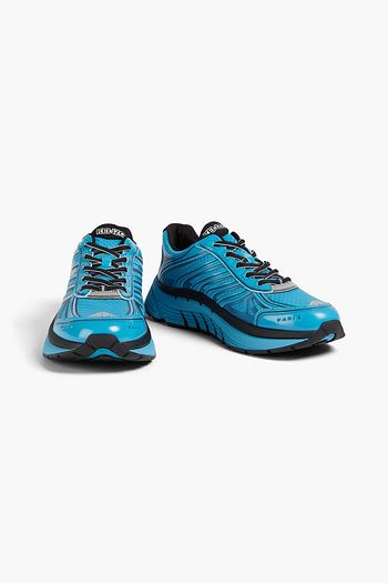 Appliquéd leather-paneled wool-blend felt bomber jacket