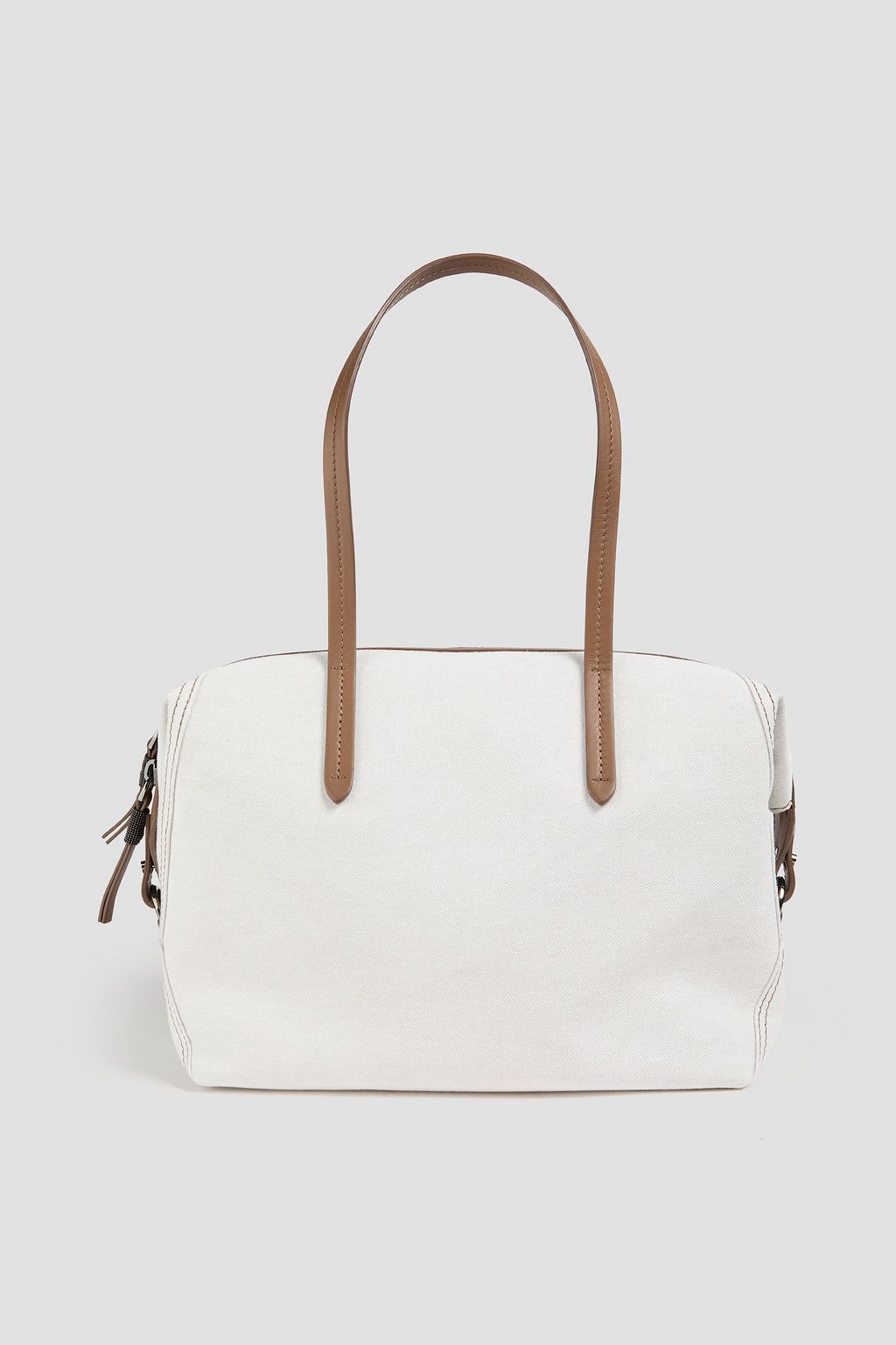BRUNELLO CUCINELLI Leather-trimmed cotton-twill tote