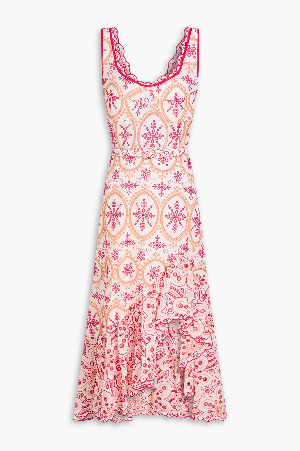 CHARO RUIZ IBIZA Belted ruffled broderie anglaise cotton-blend midi dress
