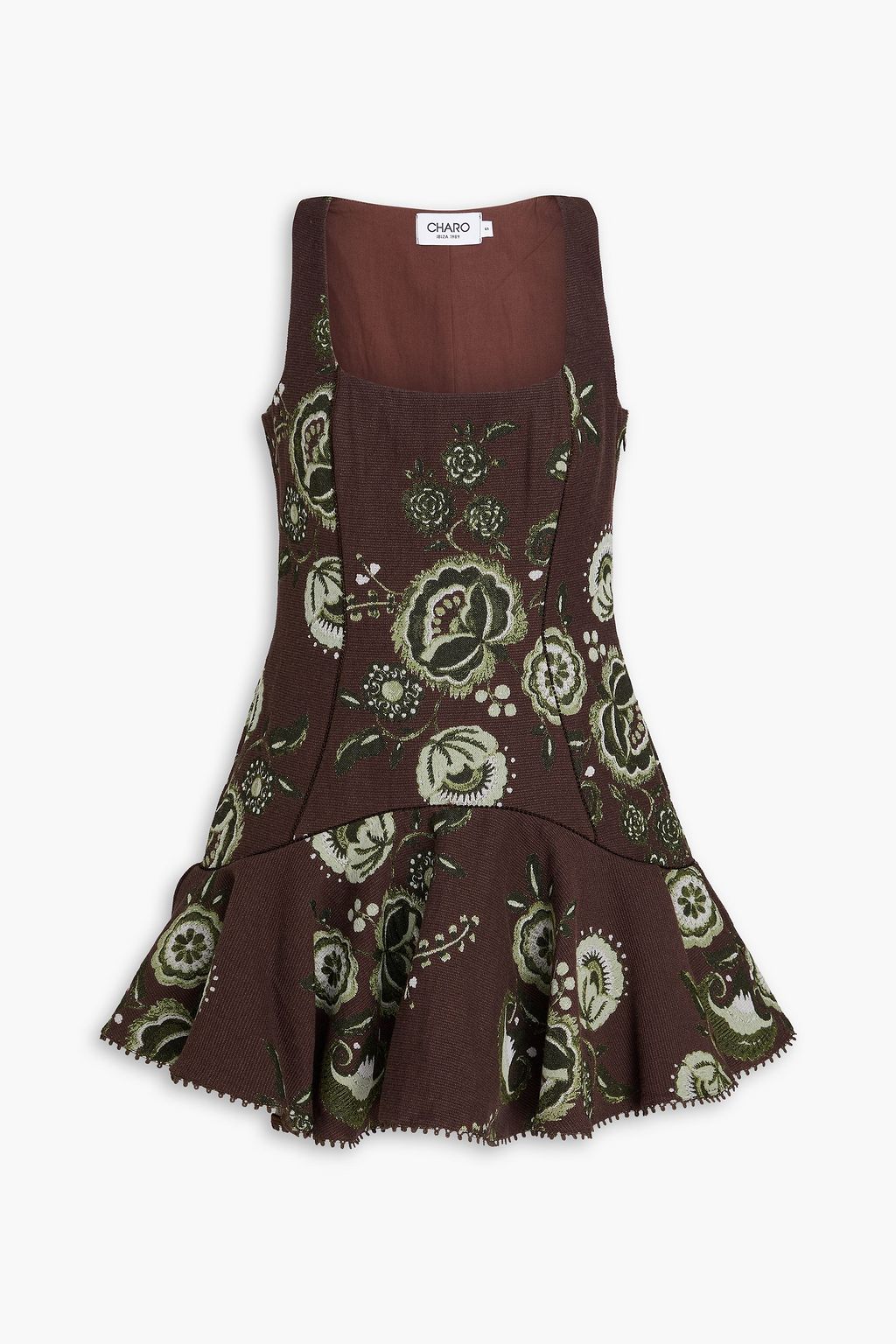 CHARO RUIZ IBIZA Gery fluted cotton-blend floral-jacquard mini dress