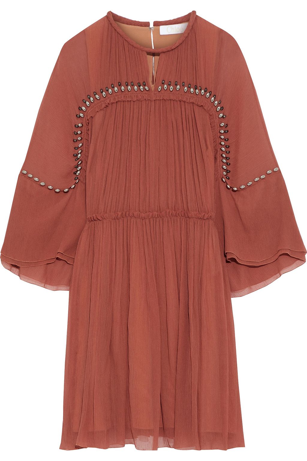 CHLOÉ Gathered embellished silk-georgette mini dress