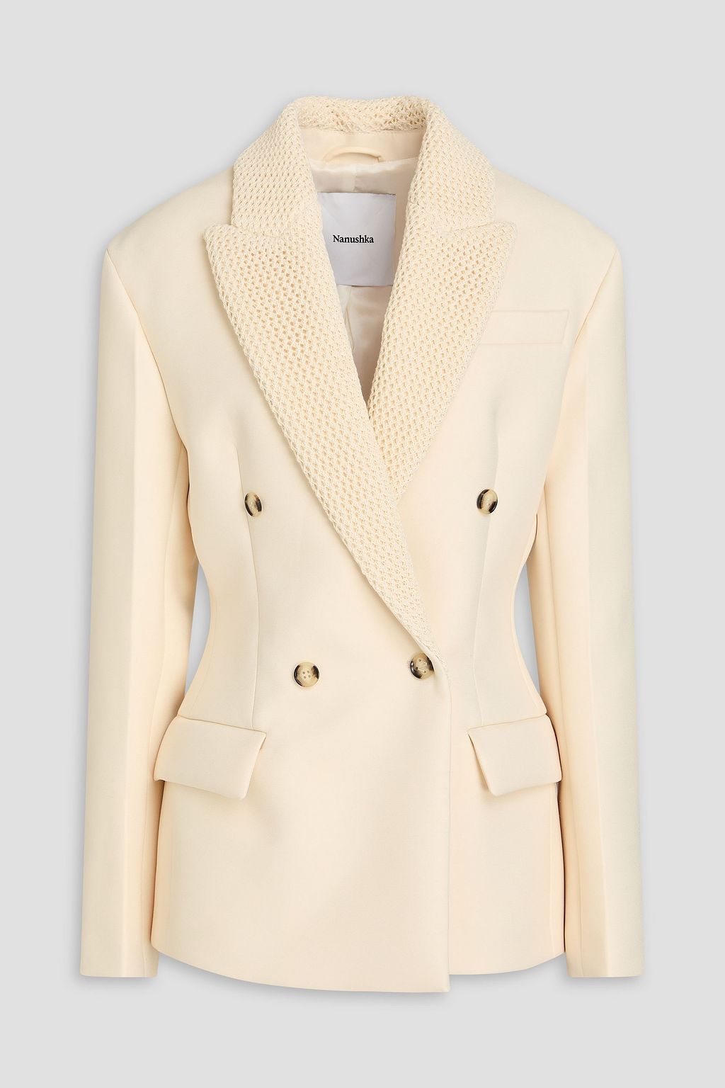 NANUSHKA Double-breasted pointelle-trimmed crepe blazer