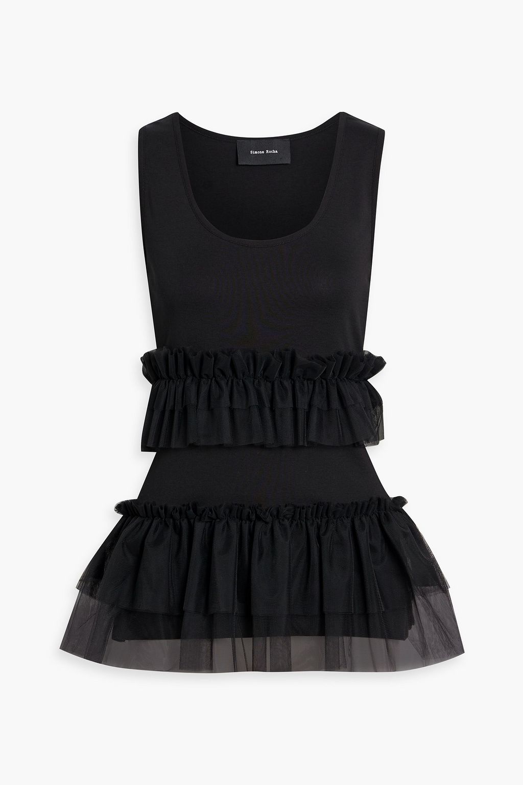 SIMONE ROCHA Ruffled tulle-paneled cotton-jersey top