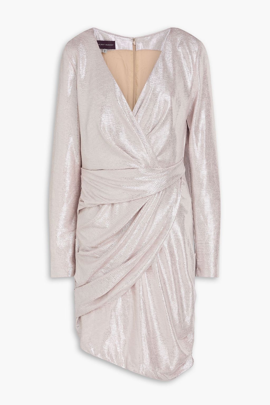 TALBOT RUNHOF Wrap-effect metallic jersey mini dress