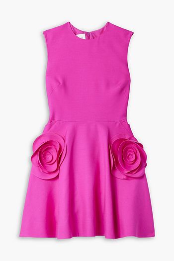 Floral-appliquéd wool and silk-blend crepe midi skirt