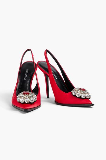 Begum 95 crystal-embellished satin slingback pumps