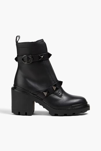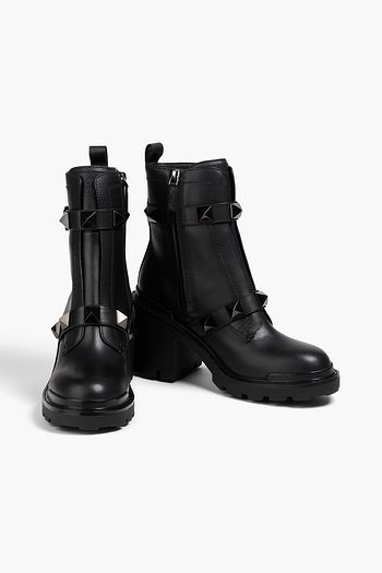 Bead-embellished canvas combat boots