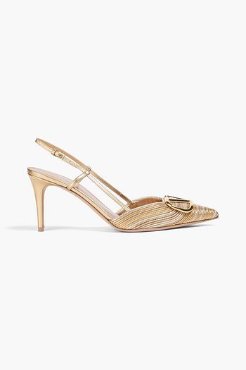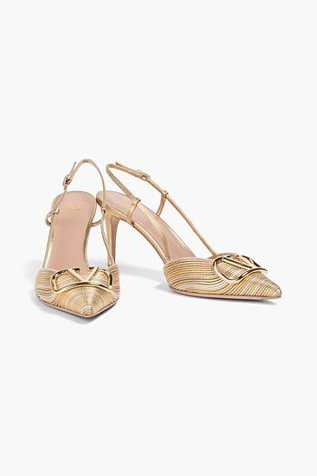 VLOGO embellished leather slingback pumps