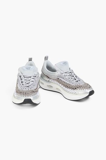 Rockstud Untitled metallic smooth and pebbled-leather platform sneakers