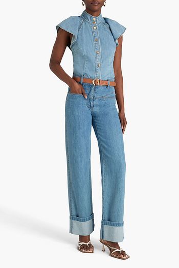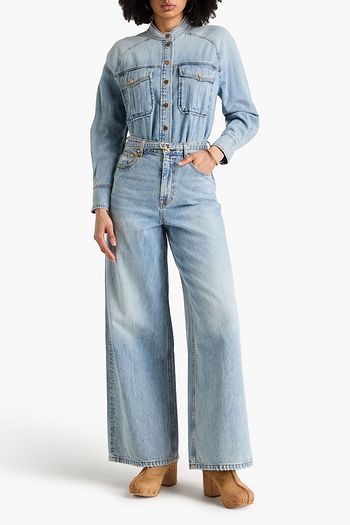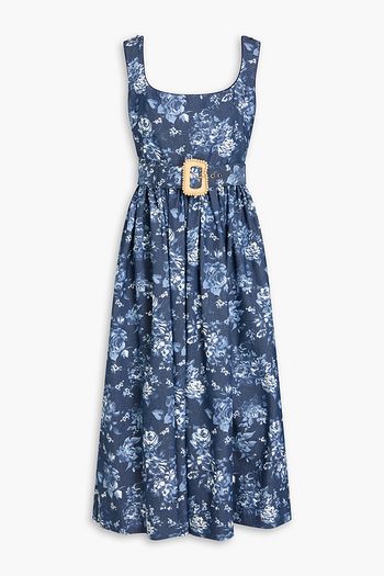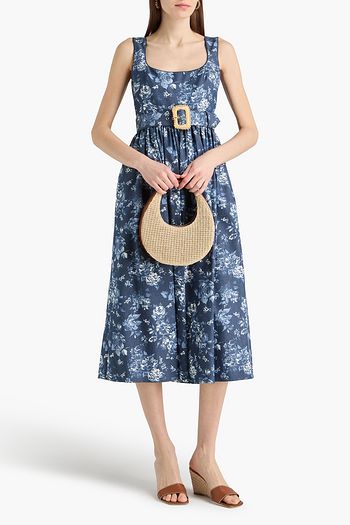 Mackenzie belted floral-print denim midi dress