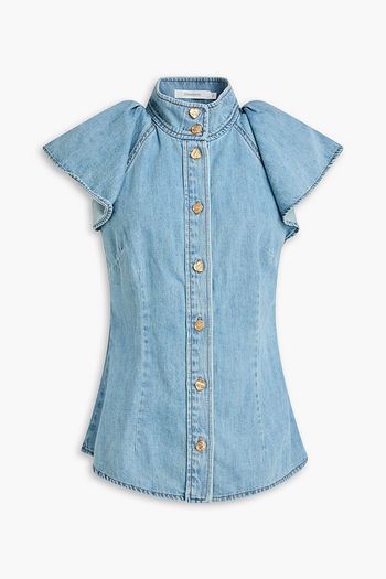 Pussy-bow denim blouse