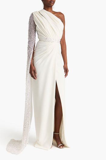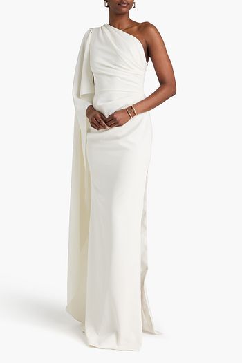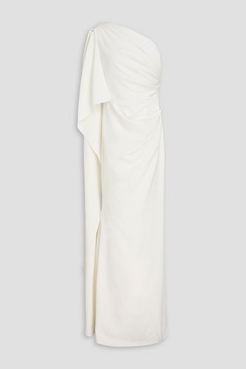 One-shoulder draped crepe gown