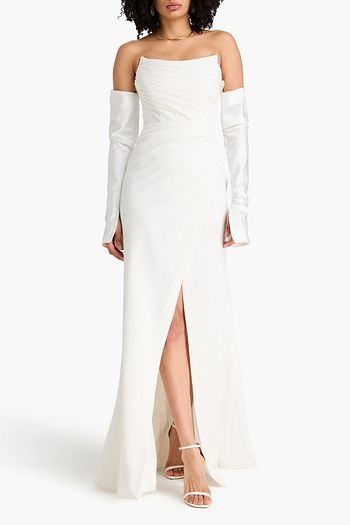 Strapless draped crepe gown