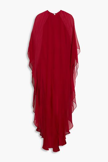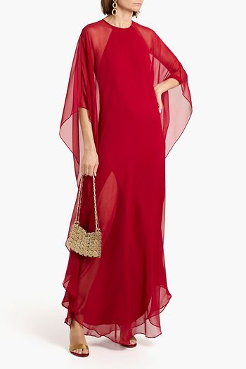 Draped silk-chiffon kaftan