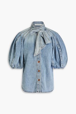 The brushstrokes might be yours: some chandelier earrings, a hot hue of lipstick or perhaps a brooch. (The latter approach was chosen by one of the earliest female white-shirt adopters, Katharine Hepburn in the 1938 film Holiday. Prior to that, no nice girls wore white blouses. Shirts were strictly for the boys.) Then again, the flourishes might be the shirt’s own: a ruffle, a flounce, a bow, embroidery, a bouffant shoulder or cuff; all of the above.