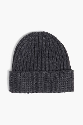 Two-tone ribbed merino wool and cashmere-blend beanie