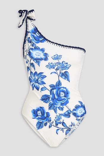 One-shoulder floral-appliquéd swimsuit